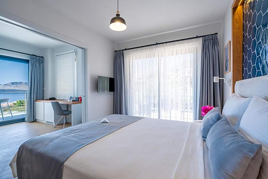 This spacious room includes a private terrace with panoramic views of the archipelago and the turquoise waters of the Mediterranean Sea.